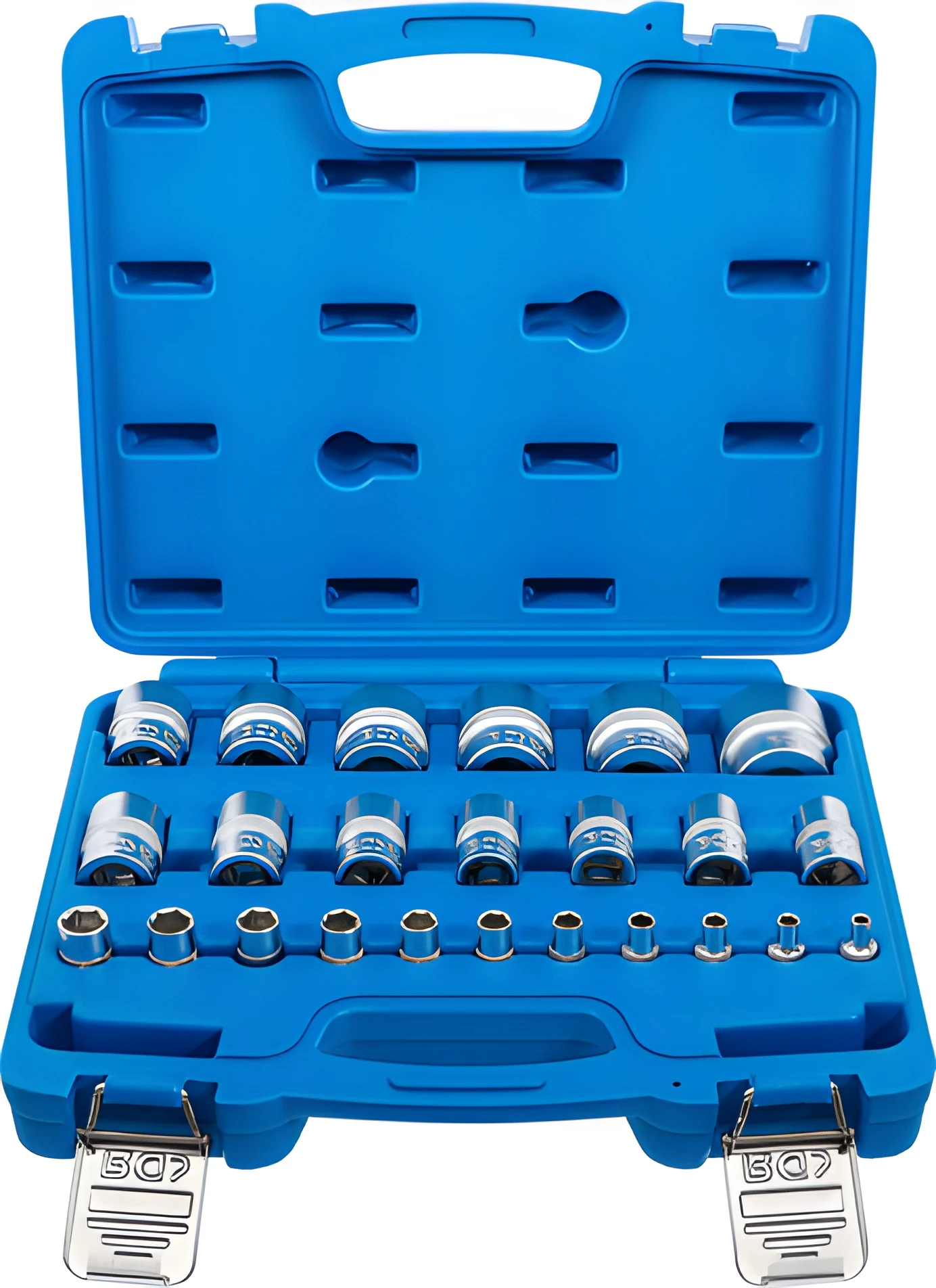 BGS Technic 9-2246 1/4"-os és 1/2"-os 6 lapú rövid dugókulcs készlet, colos, 24 részes
